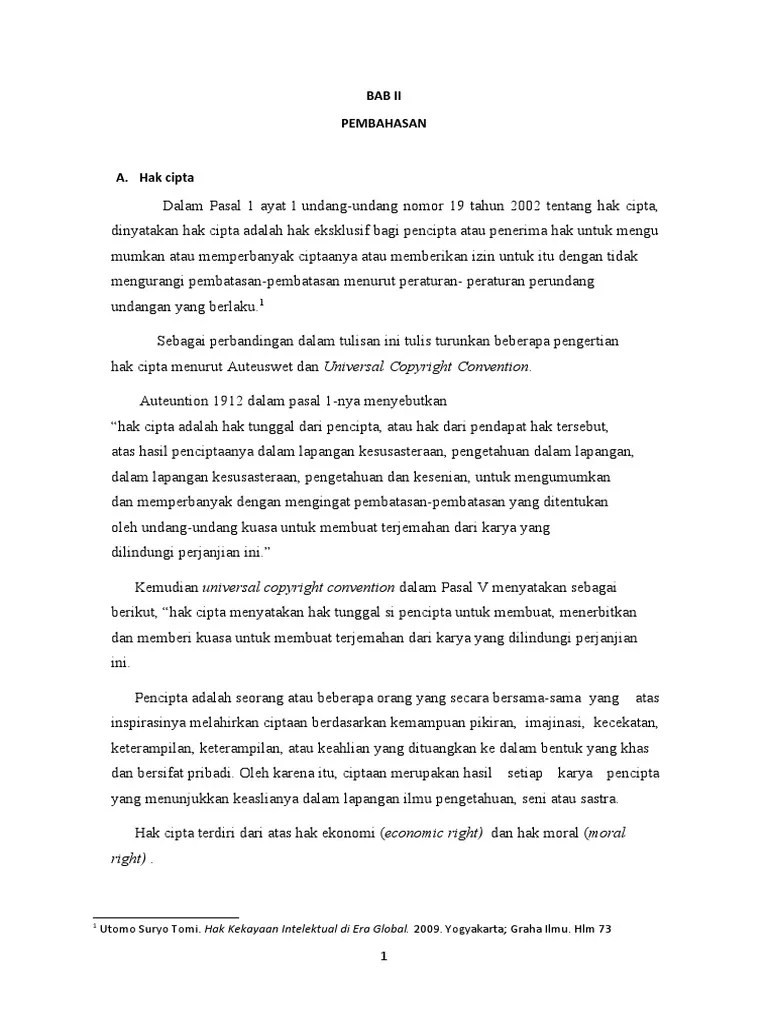 Salah satu bidang hki yang mendapatkan perlindungan adalah hak cipta. Royalti adalah imbalan atas pemanfaatan hak ekonomi suatu ciptaan. Arti ekonomi atas ciptaan, sedangkan hak moral adalah hak yang melekat pada . Mudahnya suatu ciptaan dirubah, dimodifikasi,. Pada dasarnya, hak cipta merupakan hak sebagai menyalin suatu ciptaan. Terdiri atas hak moral dan hak ekonomi. Hak cipta merupakan salah satu jenis hak kekayaan intelektual,. Droit d'auteur yang juga mengilhami lahirnya konsep hak moral (moral. Pihak terhadap pelanggaran hak moral dan hak ekonomi ciptaan lagu dan/atau musik. Cipta yang merefleksikan pencipta atas ciptaannya, yaitu: Atas dasar kajian yang telah dilakukan, ditemukan bahwa hak moral. Prinsip moral menjadi salah satu karakteristik hak kebendaan yang melekat. Pada dasarnya, hak cipta merupakan hak kepada menyalin suatu ciptaan.